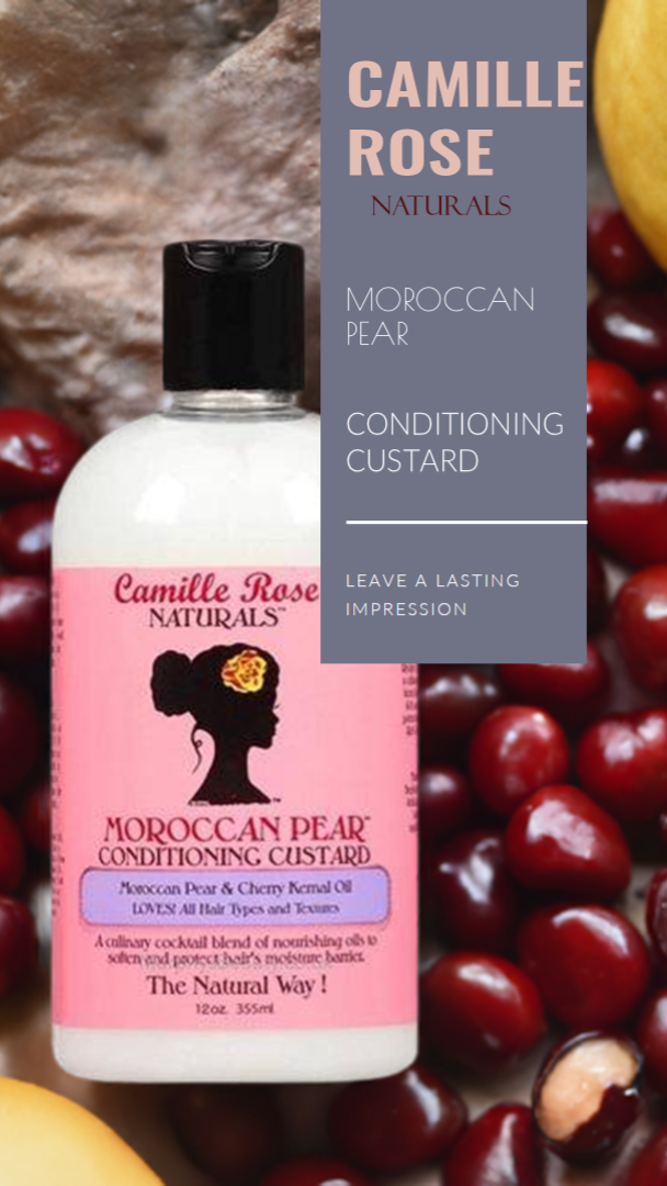 How To Use: Revel in its simplicity – post-cleansing, dispense a modest measure of Camille Rose Naturals Moroccan Pear Conditioning Custard onto your hair. From the roots to the tips, coat your mane, whether damp or dry, customized to your styling needs. Proceed with your regimen and behold the transformation to soft, impeccably defined curls that endure.