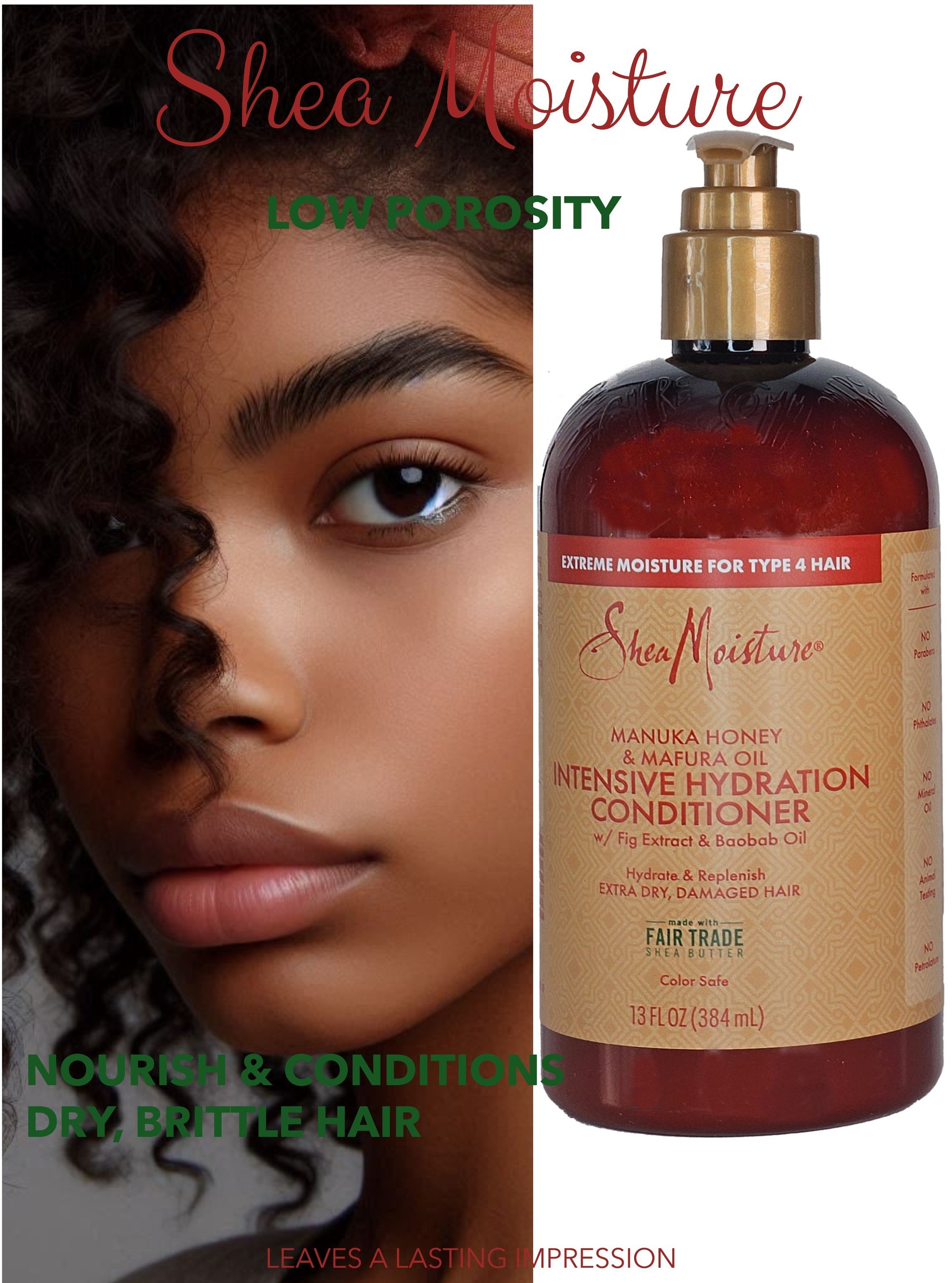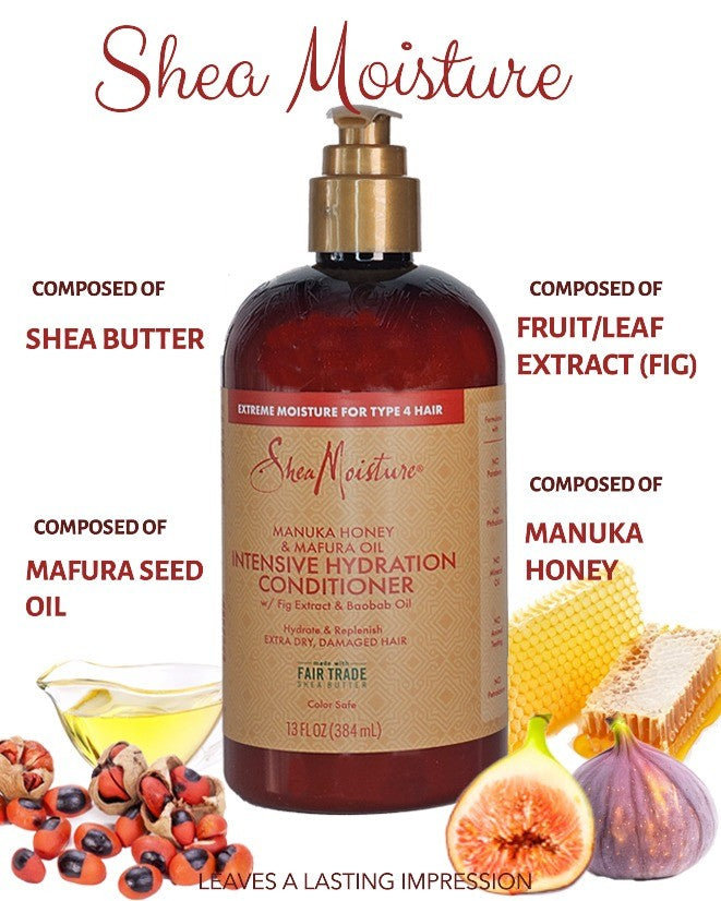 SheaMoisture Manuka Honey & Mafura Oil Intensive Hydration Conditioner this rinse-out conditioner softens and detangles while infusing hair with intense moisture and shine-enhancing nutrients.