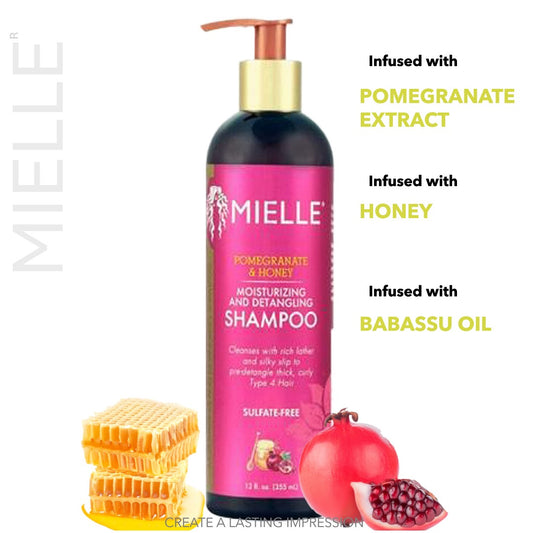Shampooing hydratant et démêlant à la grenade et au miel biologique Mielle