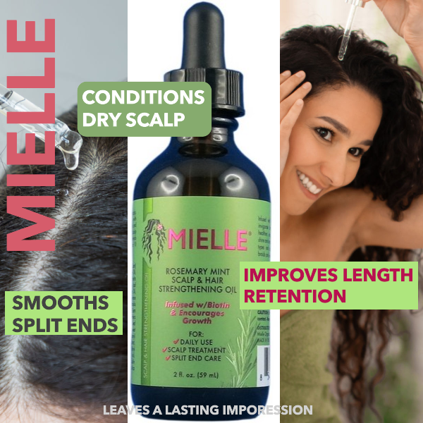 Mielle Organic Rosemary Mint Strengthening Oil is infused with Biotin, this versatile hair oil can be seamlessly incorporated into your daily hair care routine or used for specialized scalp treatments. Whether you have protective styles like braids and weaves or are indulging in a hot oil treatment, this Rosemary Mint Scalp and Hair Oil is the perfect companion, delivering both effectiveness and a fresh, invigorating scent.