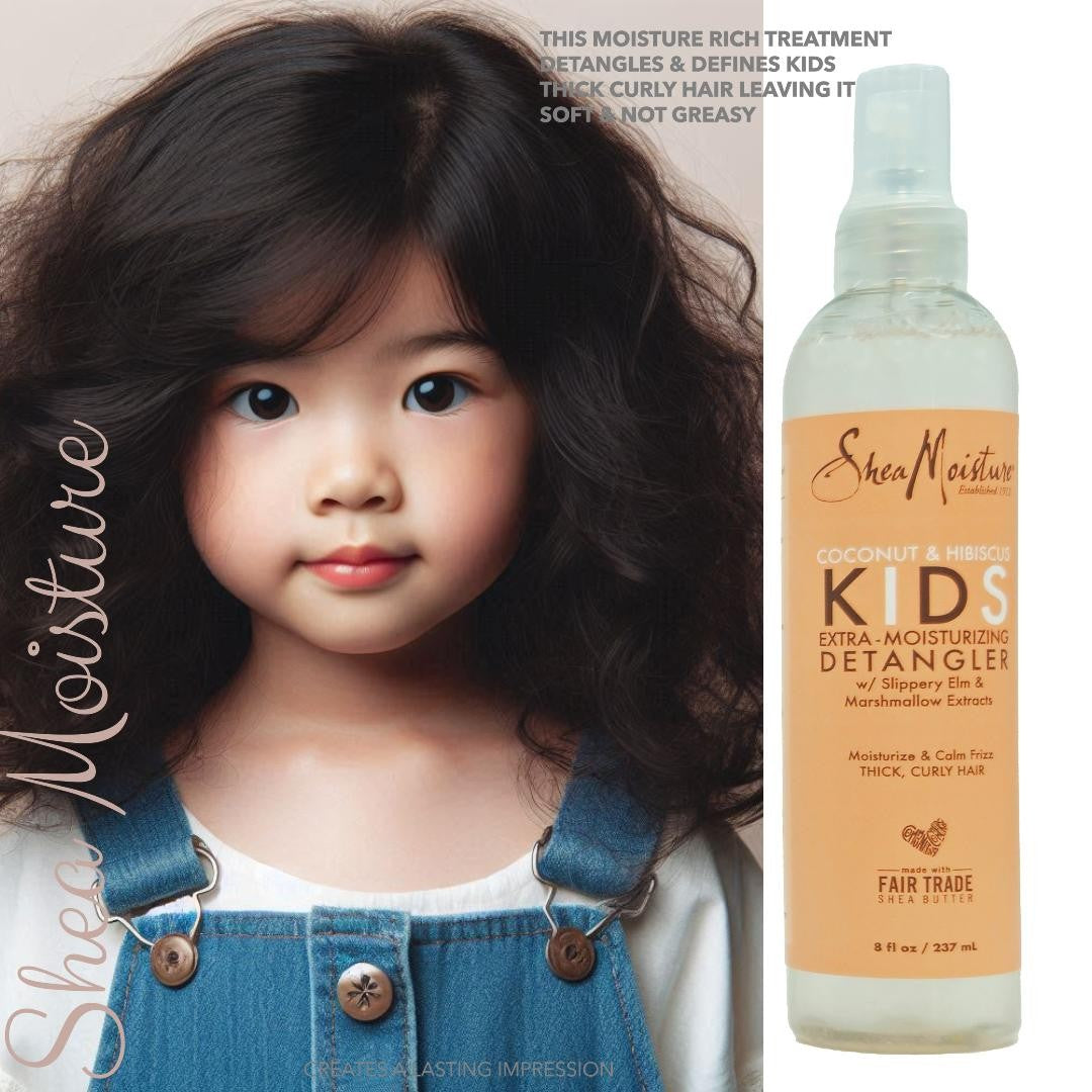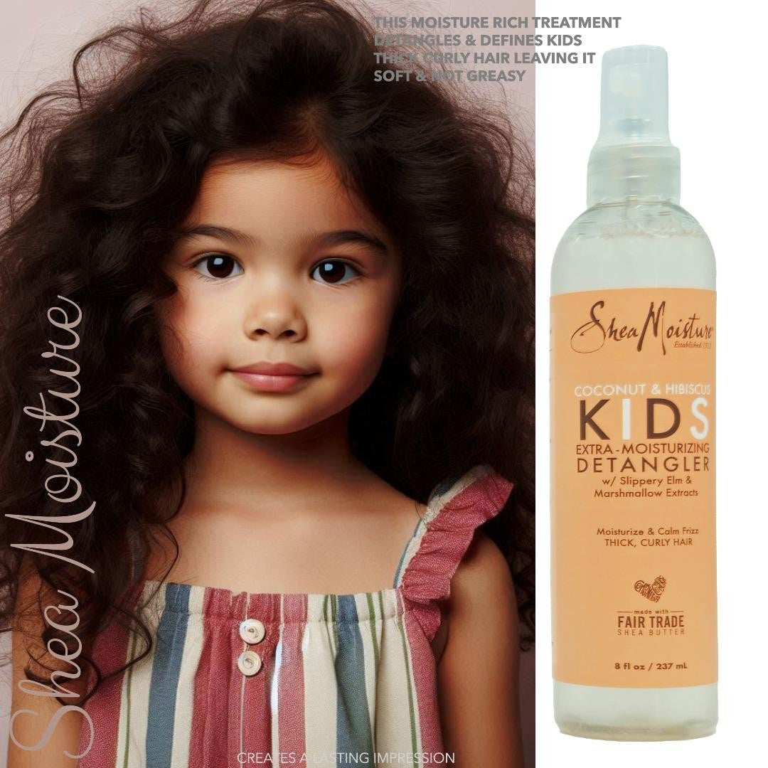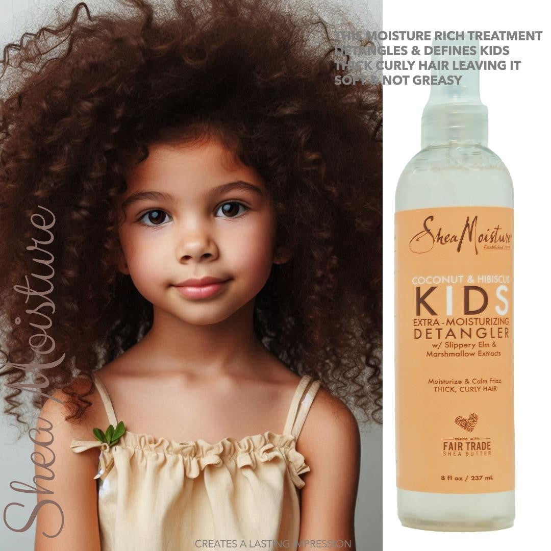 This mild, moisture-rich treatment detangles and defines children's thick, curly hair without leaving it greasy. SheaMoisture Kids Coconut & Hibiscus Detangler restores shine to dry, dull hair while conditioning and softening.